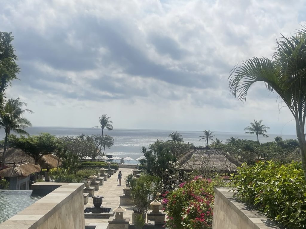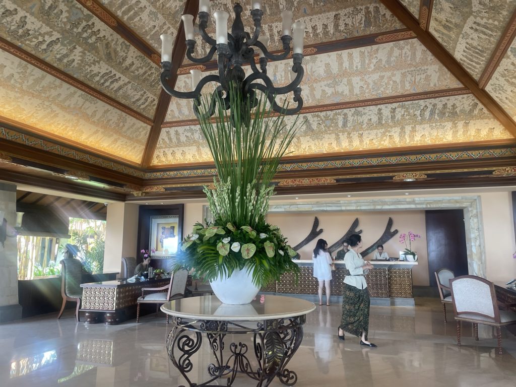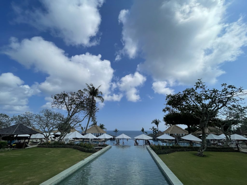 15時頃、【アヤナリゾート・バリ(AYANA Resort Bali)】へ到着。ロビーから見える海とプールの眺めに、待ち時間の間も癒されました。