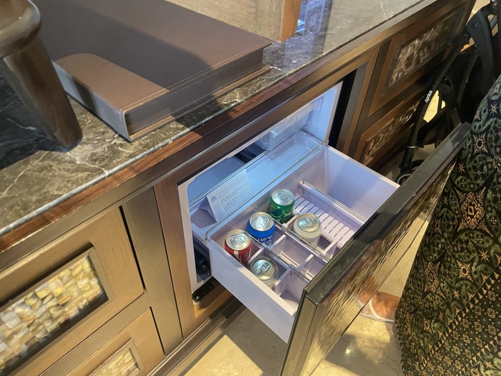 冷蔵庫の中のドリンクは、なんと無料サービス。