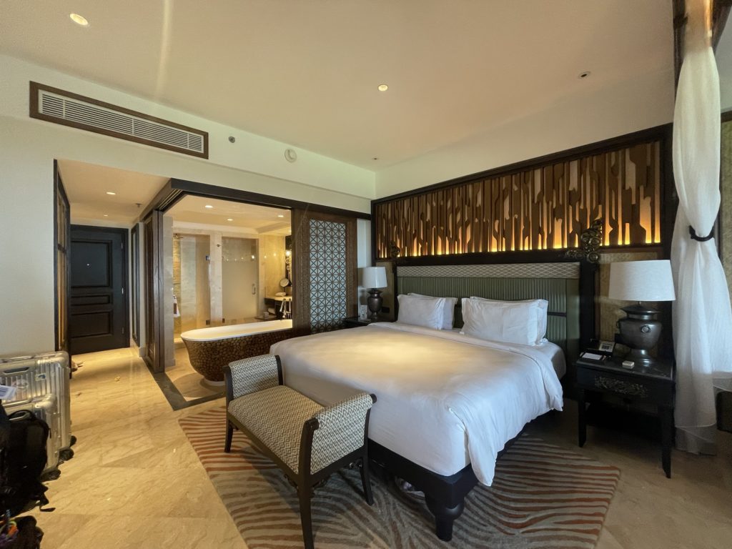 今回宿泊したのは、リゾートルーム | アヤナ リゾート バリの【リゾートビュールーム】です。伝統的なバリの木彫りで温かみのある雰囲気と、すっきりとしたモダンさが融合していて、とても落ち着ける空間でした。