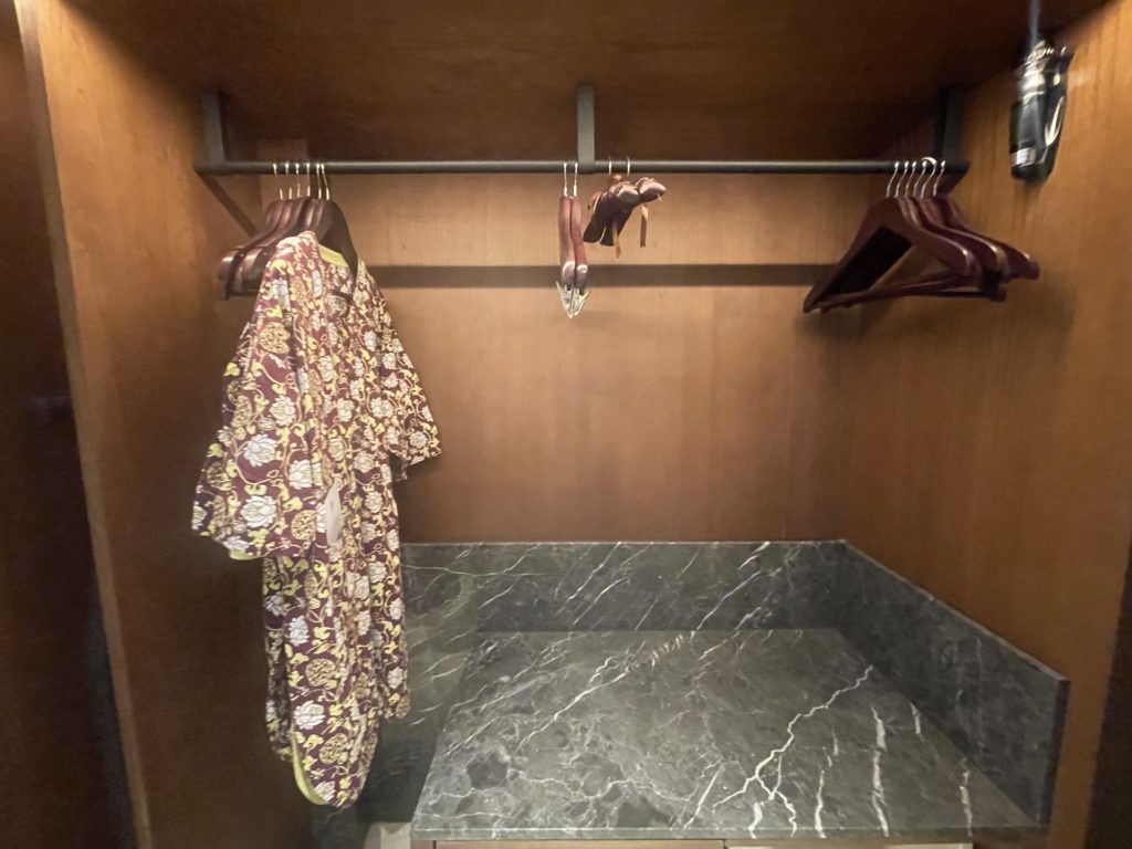 入口付近のクローゼットには、浴衣(パジャマ)・スリッパ・アイロン台・金庫など、基本的な備品がしっかり揃っていました。ランドリーサービスも利用できました。