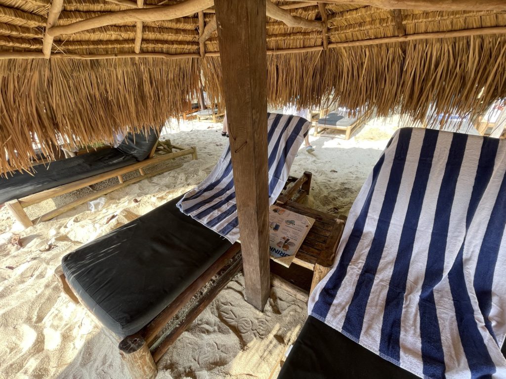 ビーチに設置されているパラソルは高さが低めで、直射日光をうまく遮ってくれます。日差しが強いビーチでも、パラソルの中は快適。