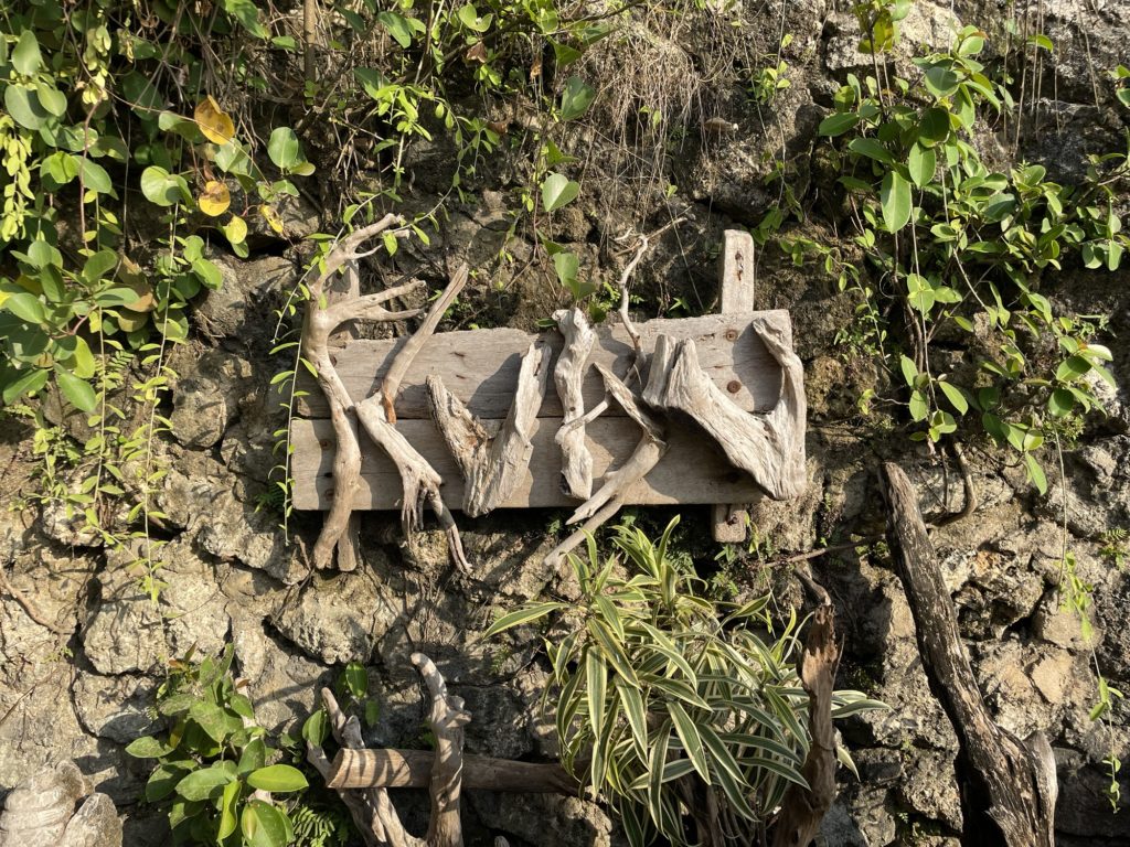 続いて水回りの様子です。まず目を引いたのは、木のデザインが特徴的な趣あるバスタブ。バスソルトもありました。