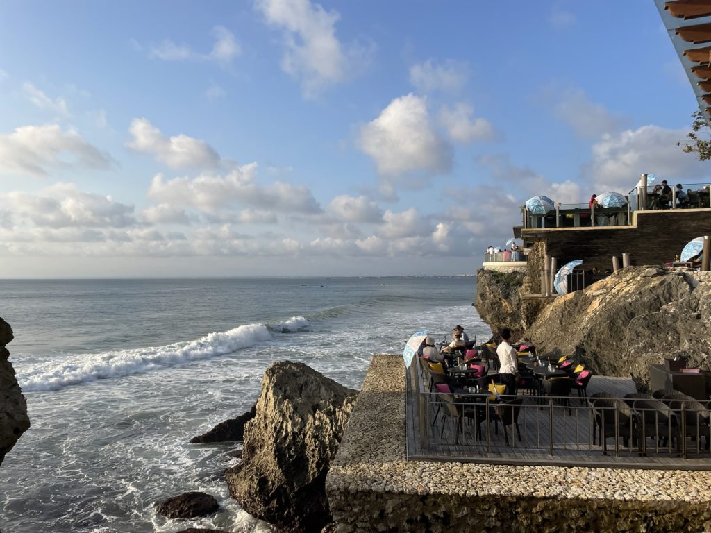 ゴンドラを降り立つと、目の前に広がるのはなるほど、これが噂のロックバー!まさに断崖絶壁の上に造られたバーで、海と空の絶景が一望できます。