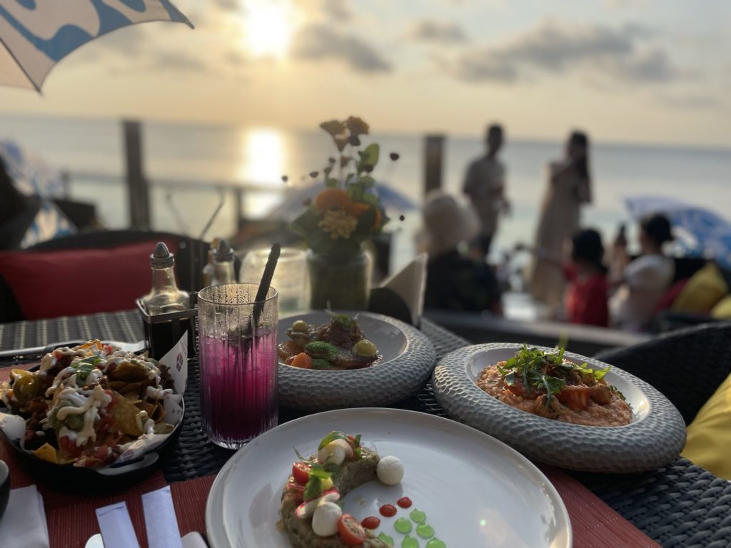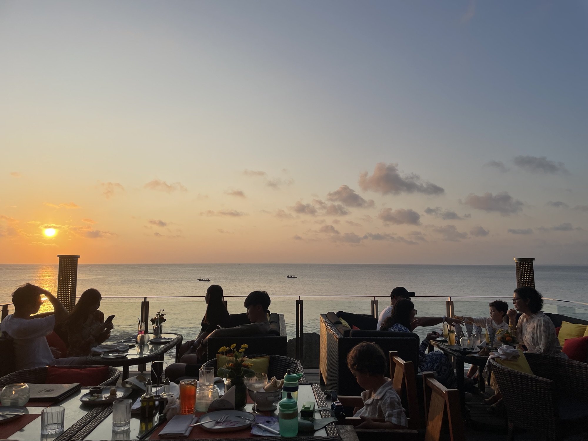 座席はソファ席やテーブル席、崖沿いの特等席などいろいろなタイプが用意されていて、どこからでもサンセットを楽しめる工夫がされていました。