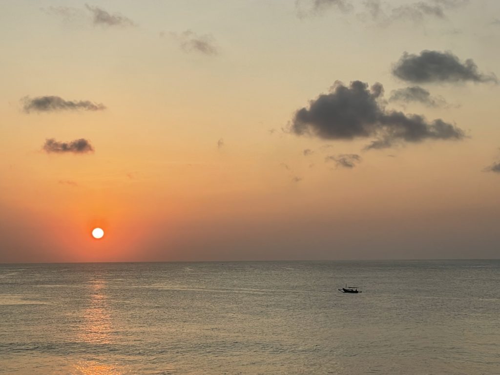 18時を過ぎると、いよいよ夕焼けの時間。目の前には何も遮るものがなく、広大な海と空に浮かぶ夕日がとても綺麗でした。子どもたちには暑くて無理させてしまったかな、と思っていましたが、娘も「きれい~!」と喜んでいたので、家族で共有できてよかったです。