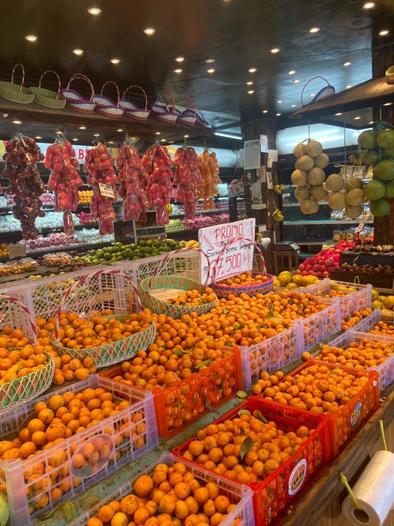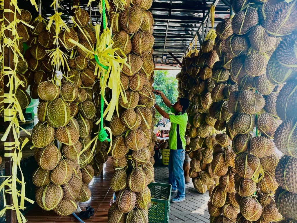 入口にある盛りだくさんのドリアンは圧巻です。中は空調がきいた綺麗なフルーツショップ。基本、なんでもチョバ(試食)させて貰えることができ、ドリアン、マンゴスチン、マンゴー、ロンガンと、沢山のフルーツをチョバ・購入しました。