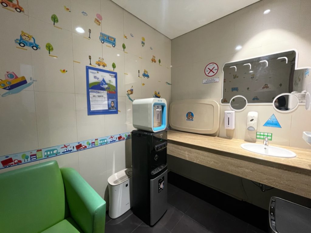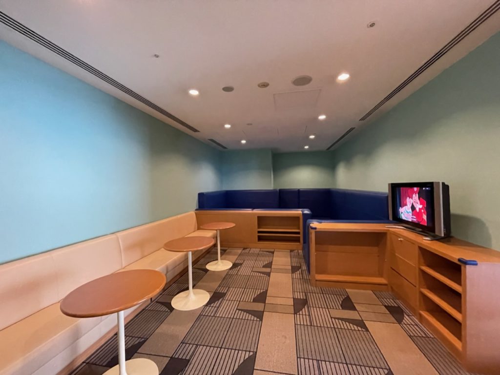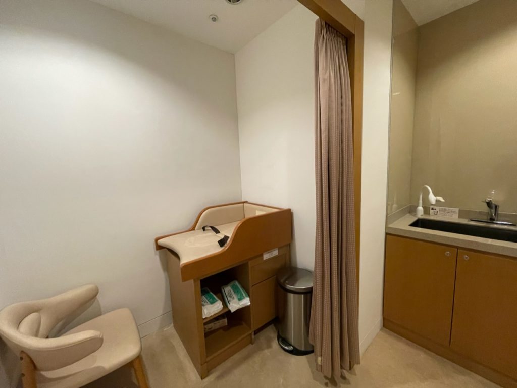 フライト前の最後のおむつ替えもラウンジで済ませます。充実したキッズスペースもありました。(感染症対策の為、おもちゃは出していないとのこと)