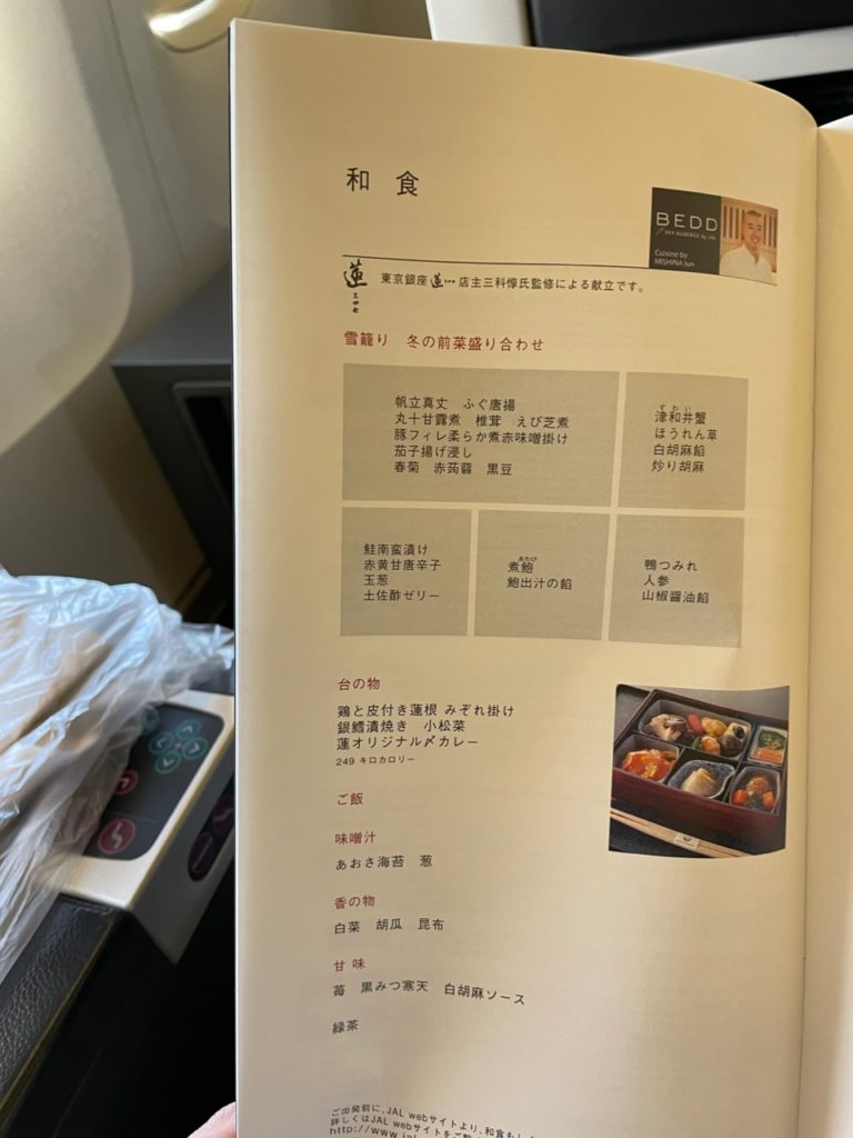 楽しみにしていた機内食。和洋から選択することができ、私は和食を選択。