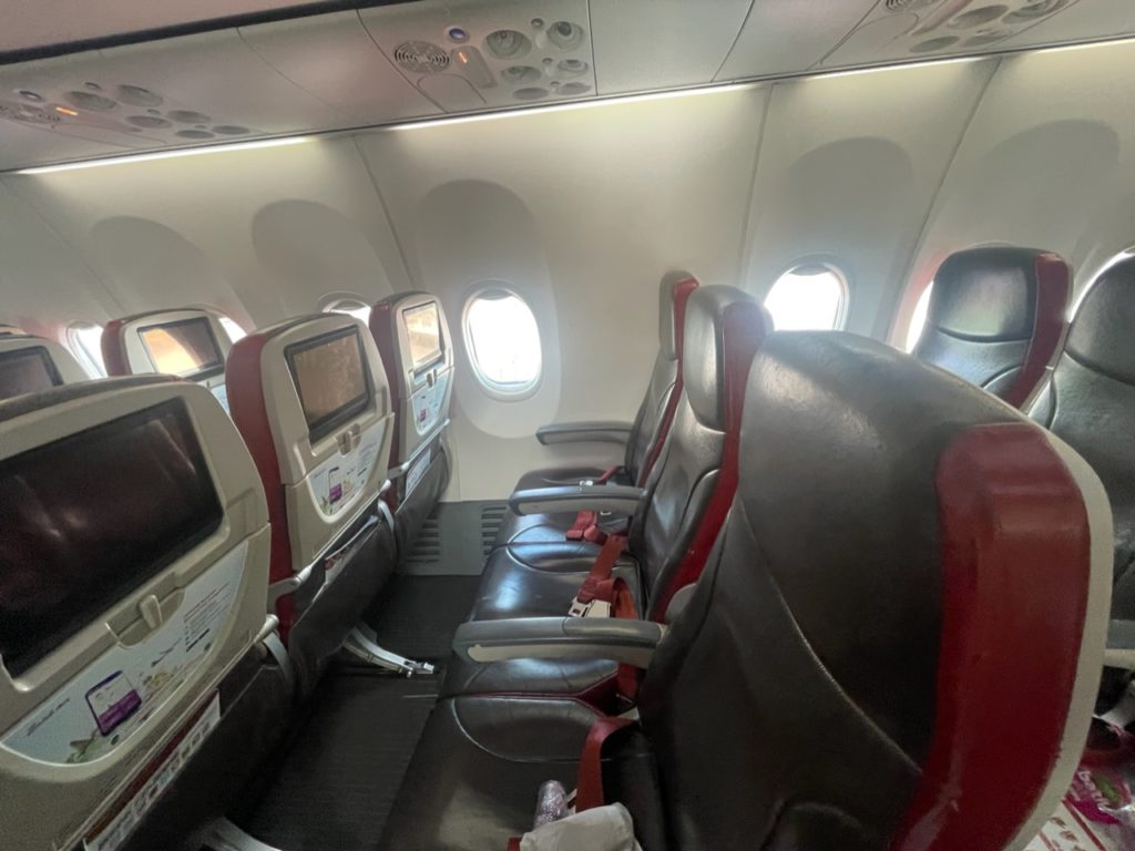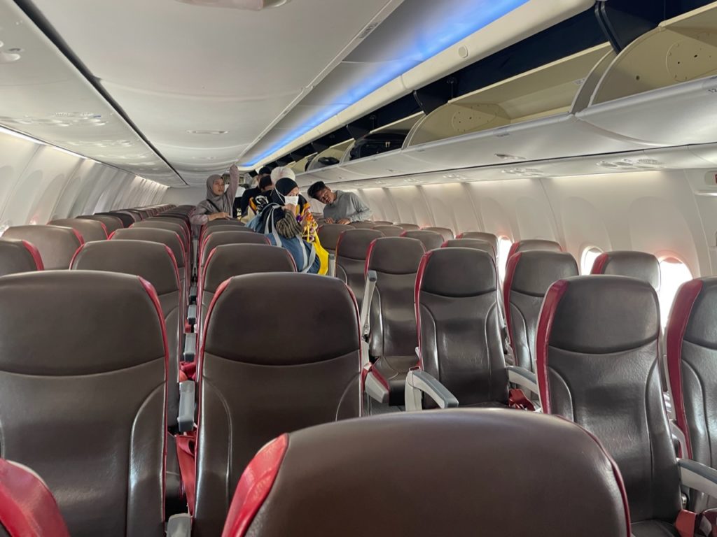 さて、いよいよ搭乗です。座席は3列シートx2列でした。週末の便ということもあり、満席でした!