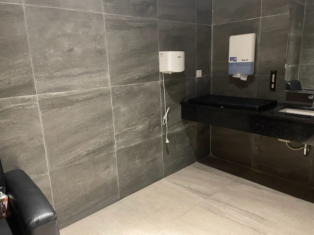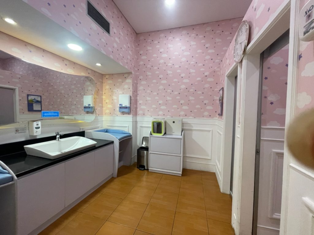 チェックインを済ませたら、カウンターの近くの授乳室&おむつ替えスペースで、娘のおむつ替えを済ませます。