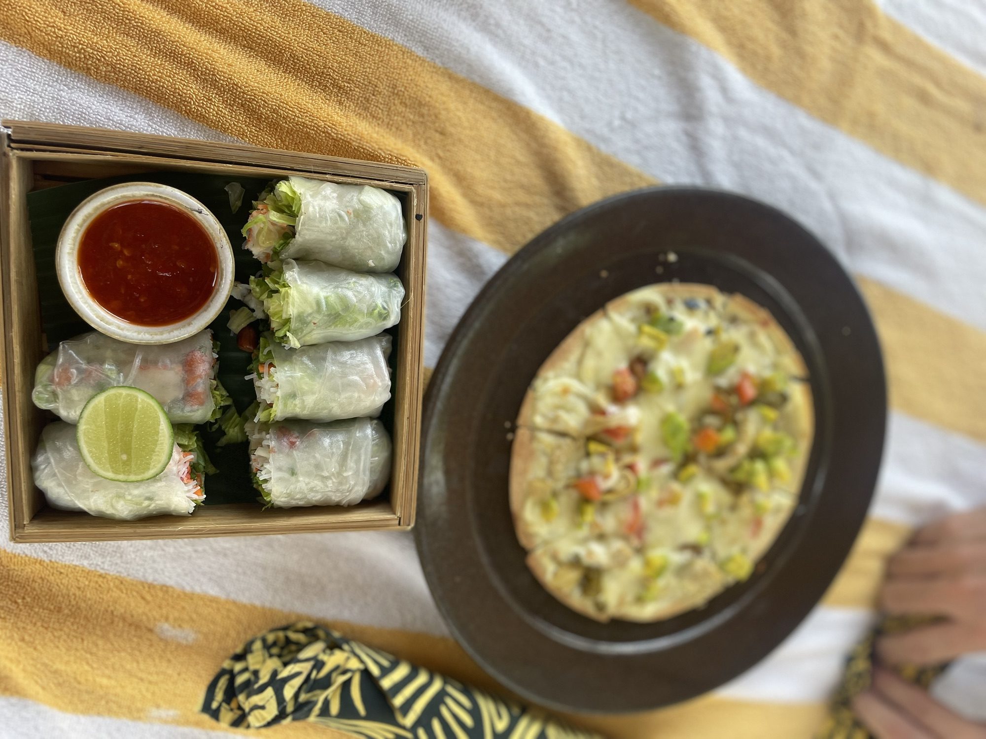 生春巻きとピザをオーダー
