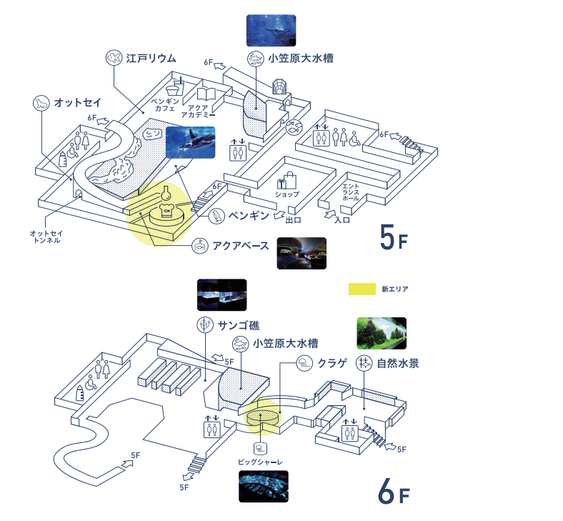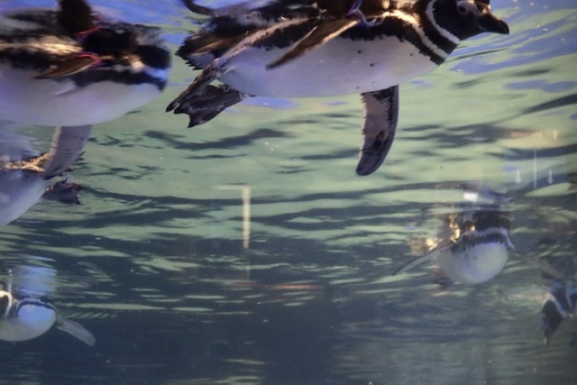 ペンギンの水槽は6Fから5Fへのスロープで囲まれています。そのため、ペンギンを上から、真横から、下からと、色々な角度から見ることができます!