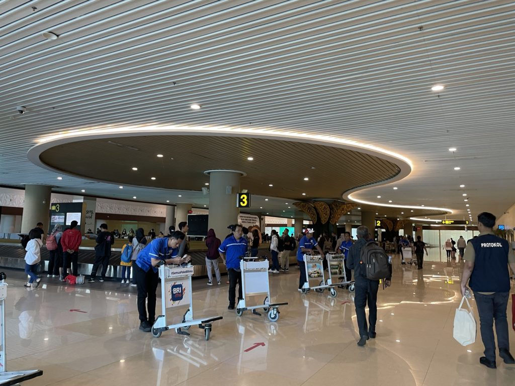 無事にジョグジャカルタ国際空港(MAP)に到着!すごく綺麗で清潔な空港です。バゲージクレームまでひたすら歩いて行きます。フロアがバティック柄だったりと、インドネシアモチーフが沢山!とてもワクワクします。