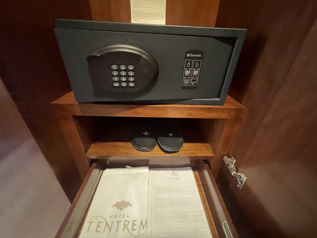 バスローブはありますが日本のホテルのようにパジャマ(浴衣)は置いていないので、パジャマは持参しました。