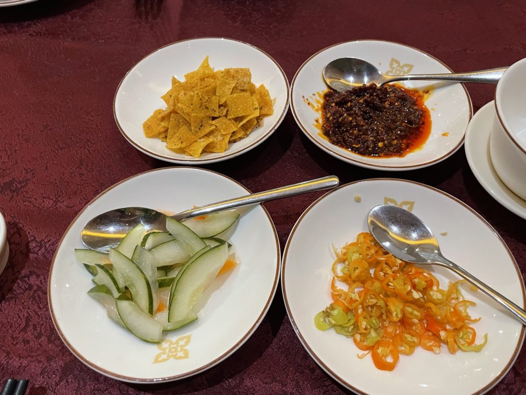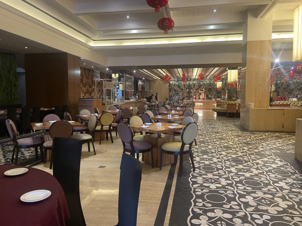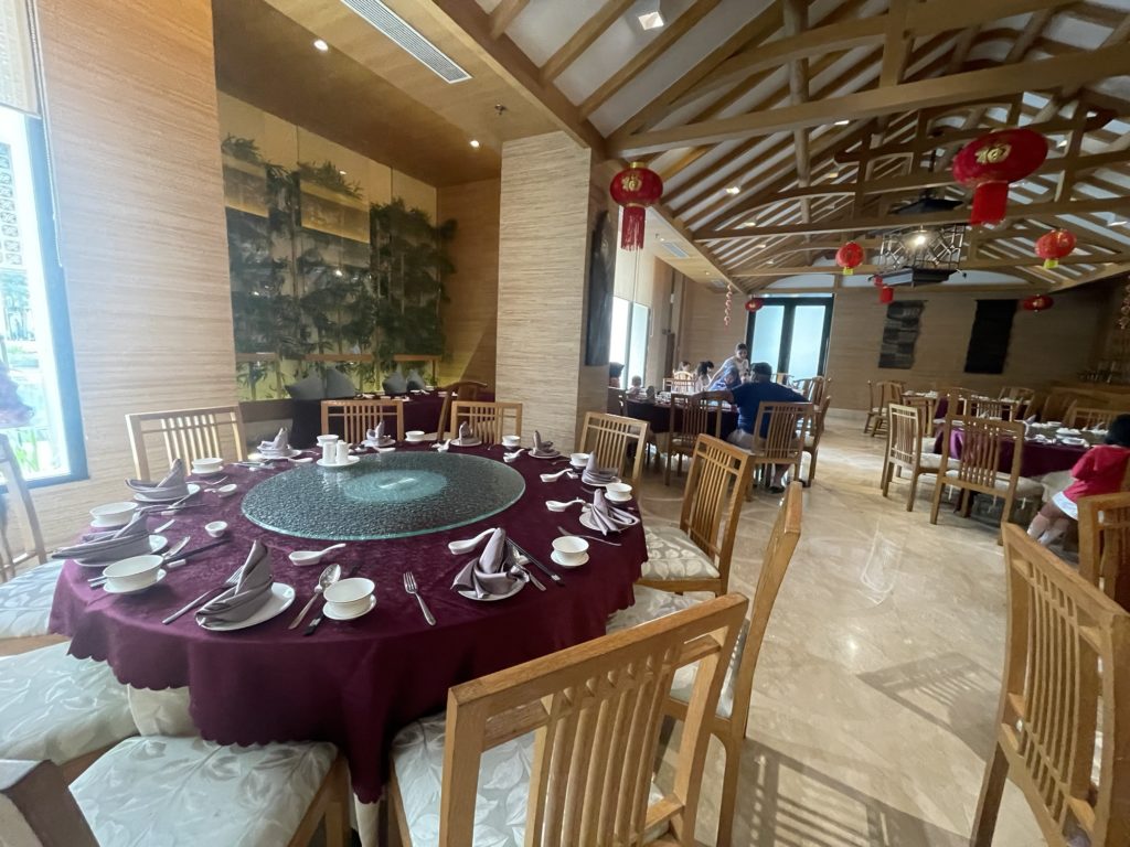 こちらのレストランも、会場は広々しています。円卓が多いですが、端っこには4人がけのテーブル席もありましたので、そちらで食事をしました。
