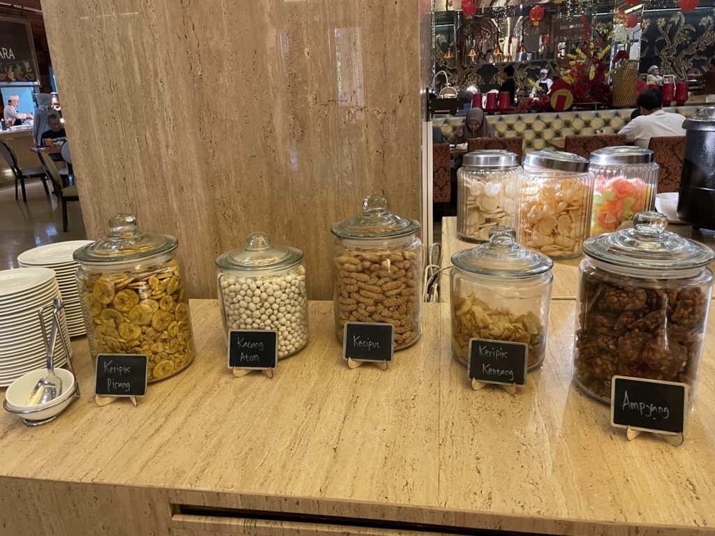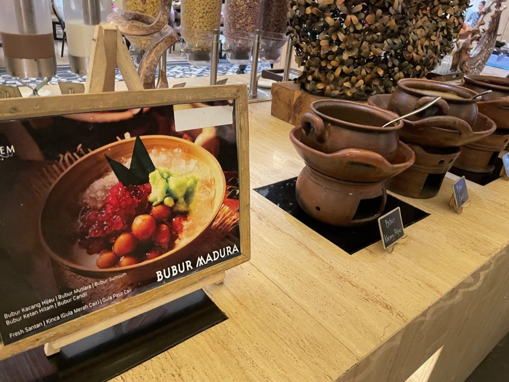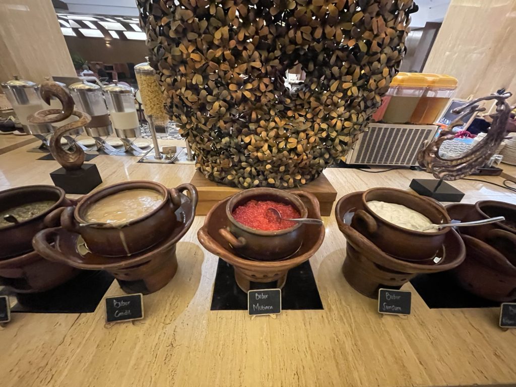 外資ホテルと異なり、豊富なインドネシア料理があり、知らない料理が沢山あってとても面白かったです。ブブール(おかゆ)ひとつとっても、確か5~6種類はありました。